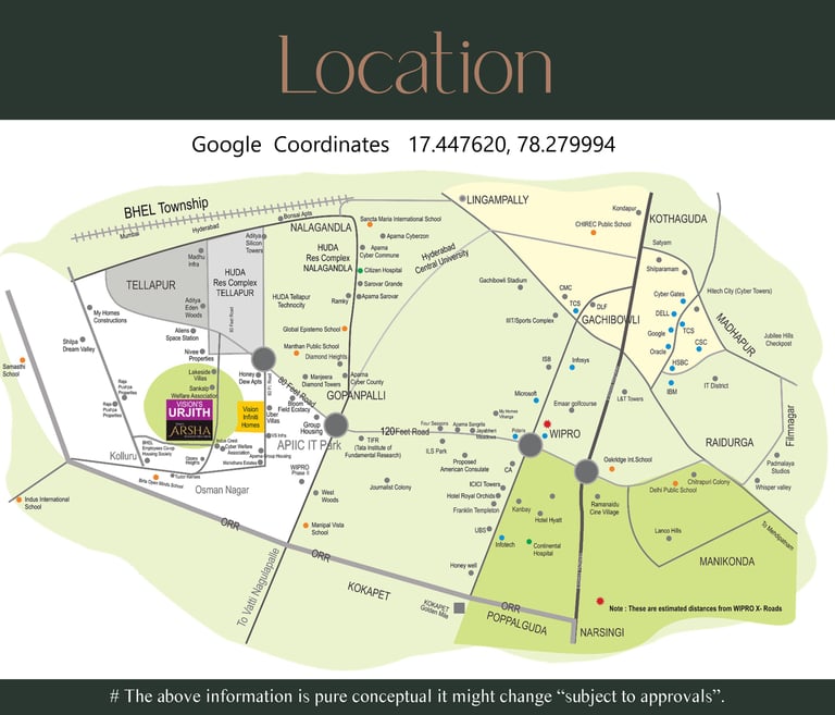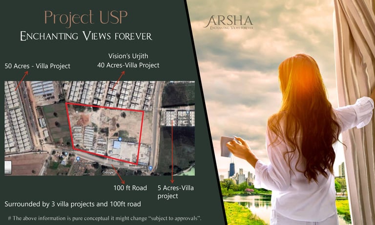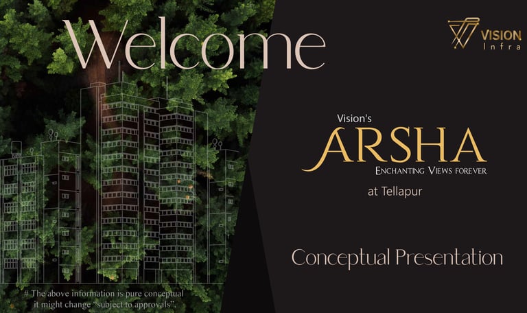 At Vision's Arsha, we bring you a residential experience that combines modern elegance with timeless beauty. Located in the prestigious enclave of Tellapur, Hyderabad, Arsha is designed for those who aspire to live a life of distinction. Surrounded by lush villa projects and expansive green spaces, Arsha offers unparalleled views and a serene living environment.